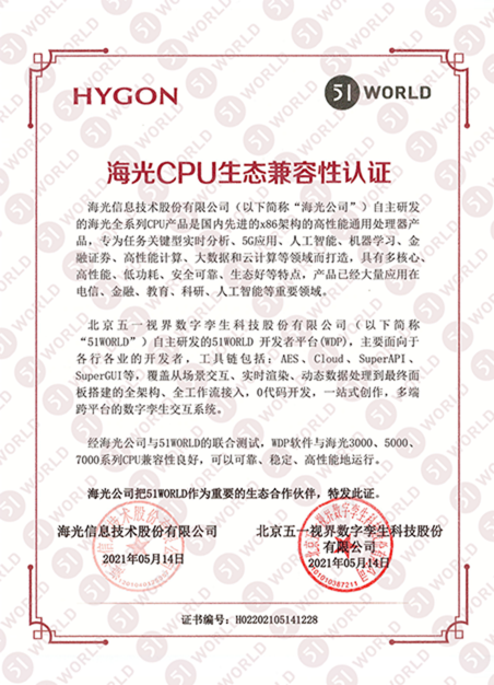 Delving into digital twin, 51WORLD has maintained rapid growth since its establishment. After years of developing and innovating, its products and services have been applied to multiple industries to help them become more intelligent. At present, the company has obtained the “High-tech Enterprise” certification jointly issued by the Beijing Municipal Science and Technology Commission, the Beijing Municipal Finance Bureau, and the Beijing Municipal Taxation Bureau, as well as the " Zhongguancun High-tech Enterprise " issued by the Beijing Zhongguancun Science Park Management Committee. The certificates are official endorsements of the government for companies in innovative research and development, as China adopts a policy of recognizing high-tech enterprises to guide the enterprises to adjust their industrial structures, stimulate them to innovate, and accredit companies with outstanding performance in scientific and technological innovation.